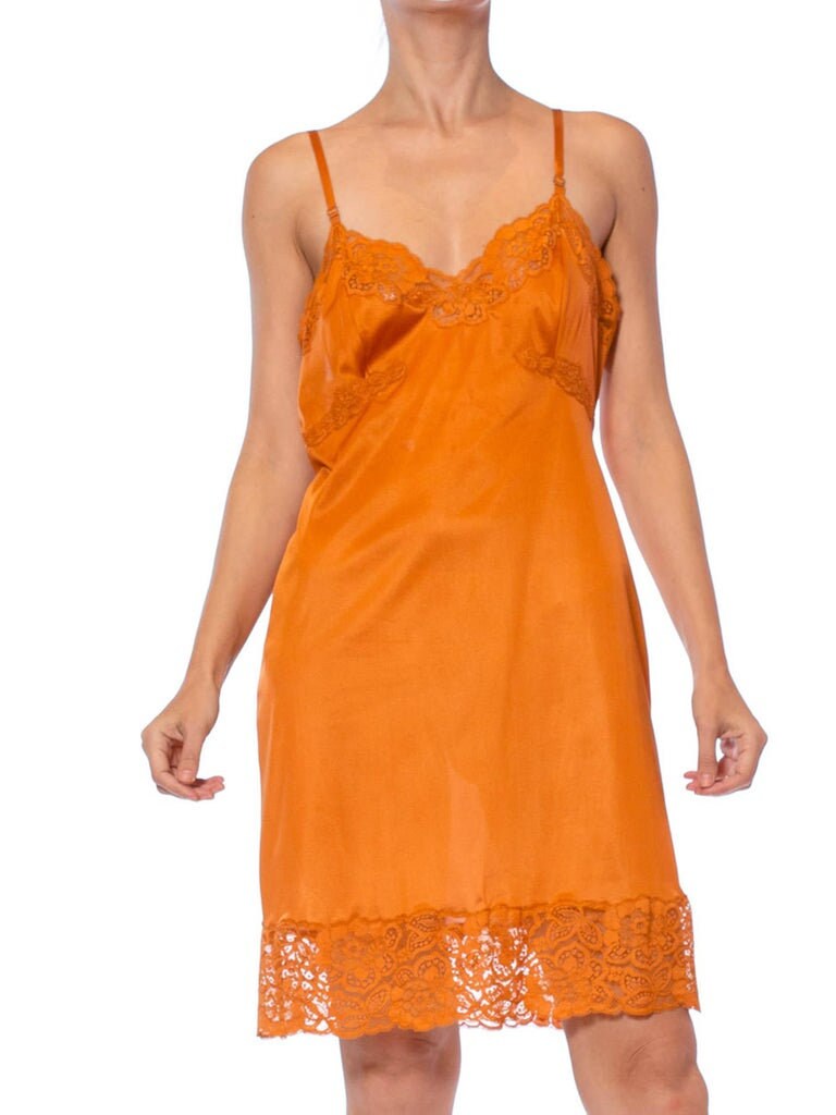 Buy 1960s Burnt Orange Nylon Tricot Jersey Lace Trimmed Slip Dress Online In India Etsy